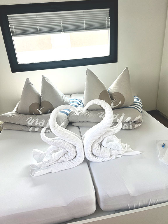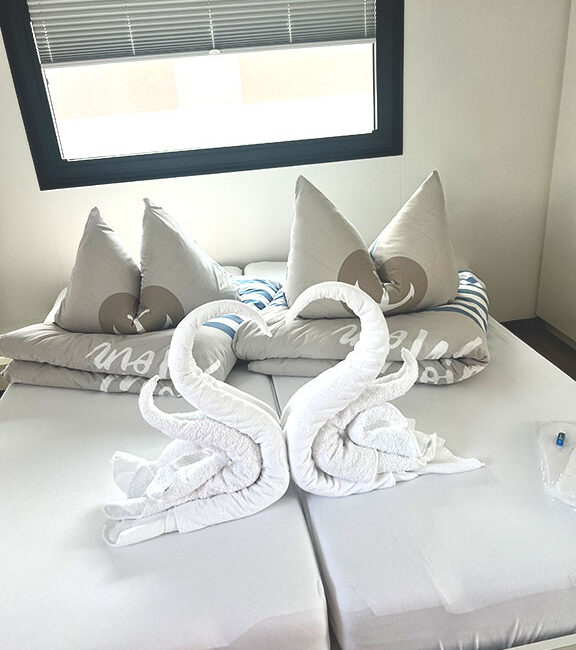 Für euren Komfort erwarten euch bezogene Bettwäsche und Handtücher. Dies ist fester Bestandteil unseres Services.
